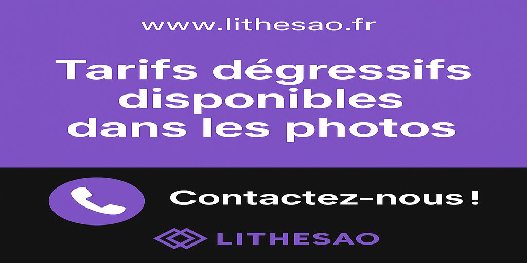 (Les tarifs dégressifs ne sont pas affichés directement sur le site. Vous pouvez toutefois les consulter dans le tableau inclus dans les photos de chaque produit. Pour toute demande complémentaire ou devis personnalisé, merci de nous contacter.)